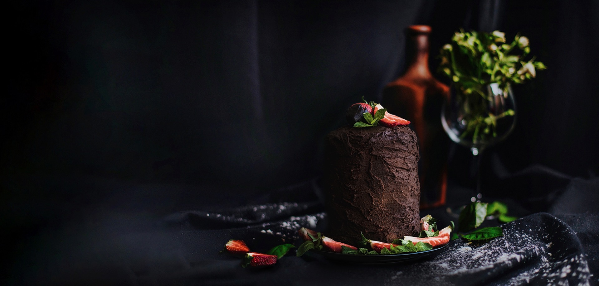 - Descripción:Una exquisita tarta de chocolate negro, rellena de una suave crema de frambuesa, cubierta con ganache de chocolate y decorada con fresas frescas.